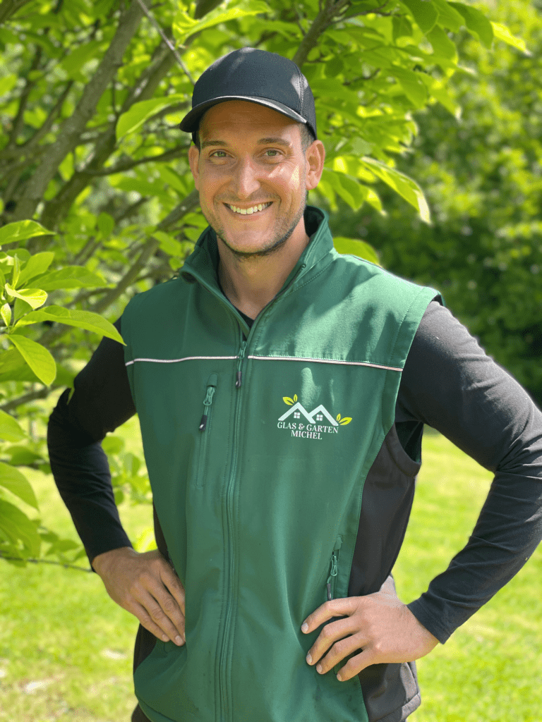 Ich bin Dennis Michel – Gründer von Glas & Garten Michel. Mit vielen Jahren Erfahrung in der Grünpflege und im handwerklichen Bereich bringe ich das nötige Know-how mit, um jedes Projekt präzise, sauber und zuverlässig umzusetzen. Seit 2023 setze ich mit meinem Team auf moderne Technik, ehrliche Arbeit und Qualitätsanspruch in jedem Detail. Ob professionelle Gartenpflege, präzise Holzarbeiten, streifenfreie Glasreinigung oder zuverlässiger Winterdienst: Wir liefern Ergebnisse, die überzeugen – Tag für Tag. Lernen Sie uns kennen – Glas & Garten Michel.